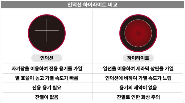 - 하이라이트와 인덕션의 차이점